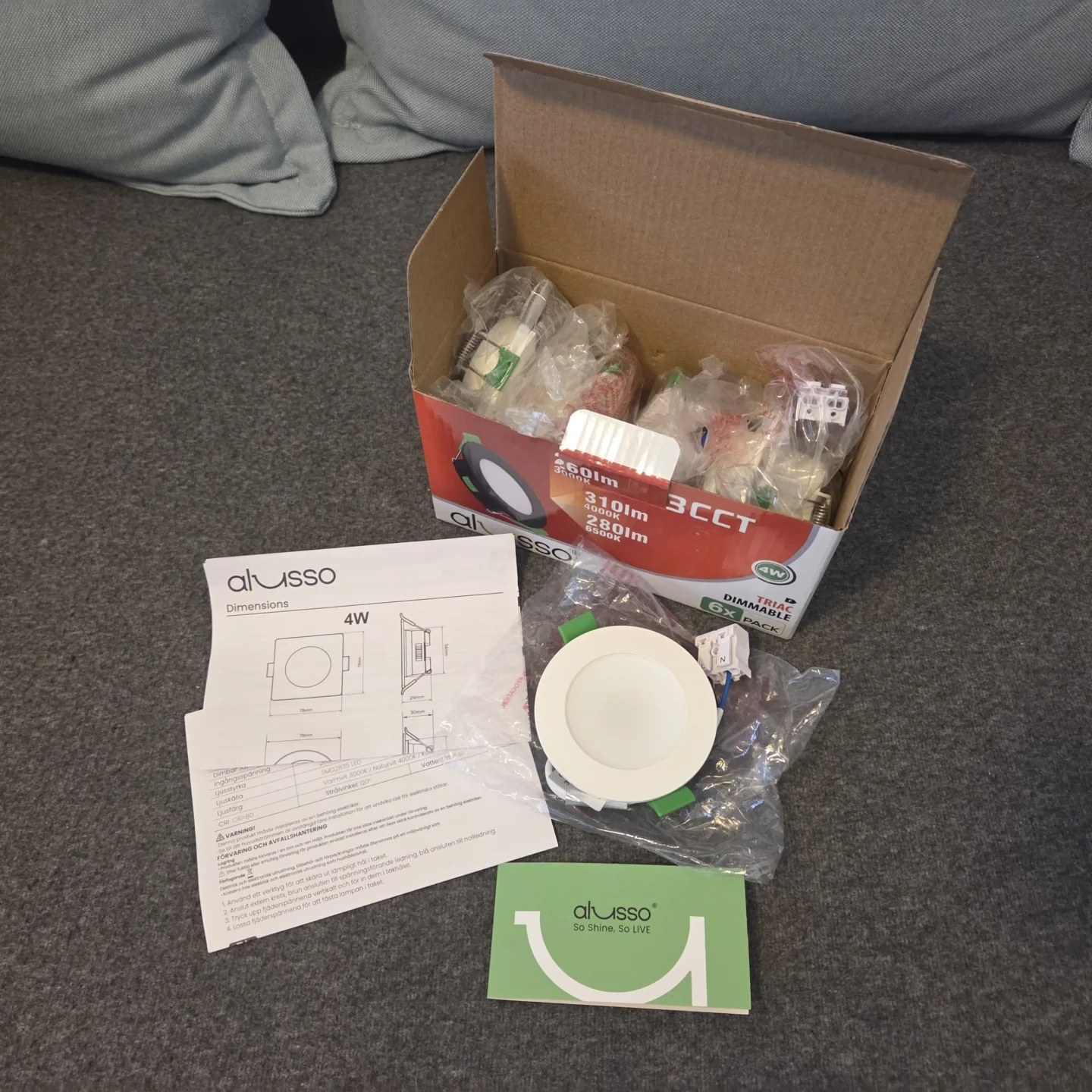 Beim Test der ALUSSO 4W LED Recessed Spotlights fällt sofort auf, wie kompakt und leicht sie sich in bestehende Deckenausschnitte integrieren lassen. Die geringe Leistungsaufnahme wirkt im Alltag angenehm effizient, ohne dass die Helligkeit darunter leidet. Ein warmes, gleichmäßiges Licht sorgt für eine angenehme Atmosphäre, die weder blendet noch unruhig wirkt. Besonders positiv zeigt sich die stabile Lichtfarbe, die auch nach längerer Nutzung konstant bleibt. Die Einbauleuchten eignen sich gut für Flure, Küchen oder kleinere Räume, in denen punktuelle Beleuchtung gefragt ist. Auch die Wärmeentwicklung bleibt niedrig, was ein Gefühl von Sicherheit vermittelt.