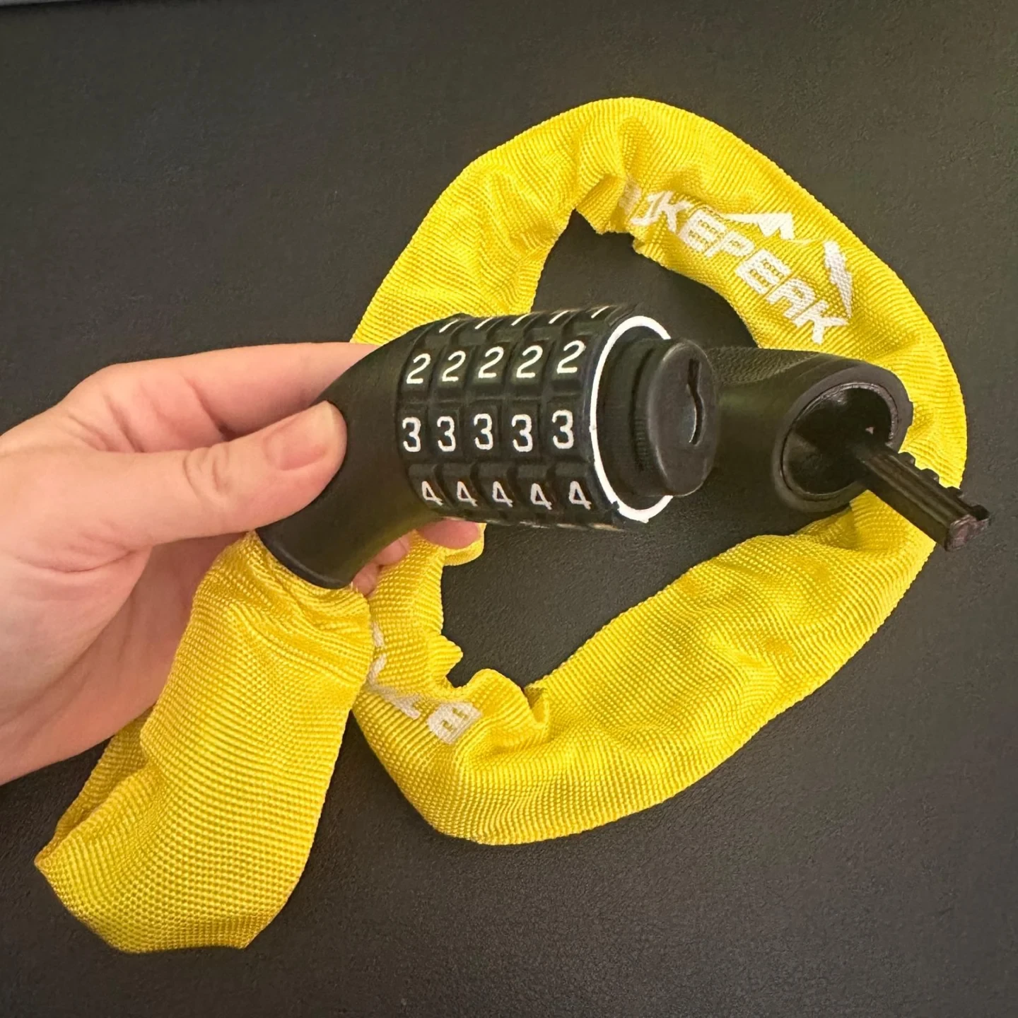 Bei dem ersten Kontakt mit dem BikePeak Mount Lockup Fahrradschloss fällt sofort das ansprechende Design auf, das funktional und modern zugleich wirkt. Die hochwertige Ummantelung der Stahlkette verleiht dem Schloss nicht nur eine angenehme Haptik, sondern schützt auch den Fahrradrahmen vor Kratzern.