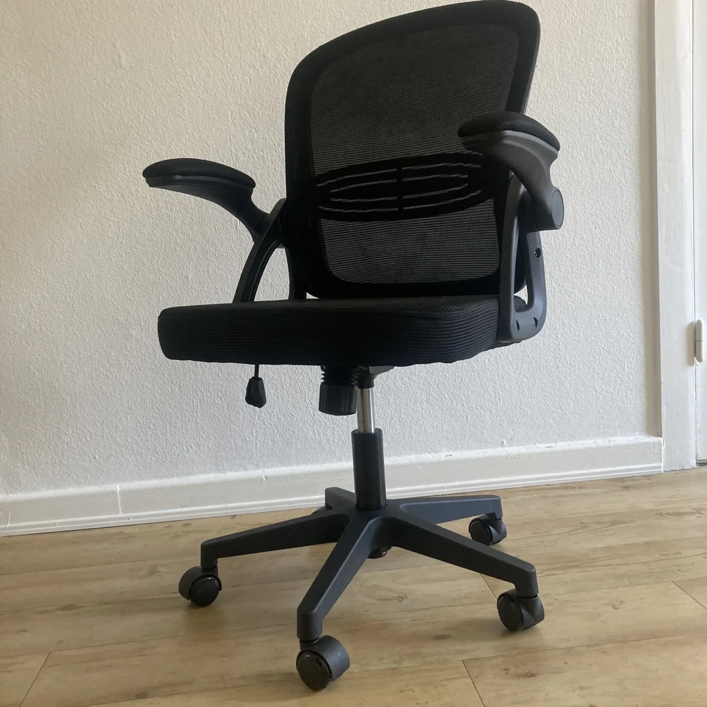 Der Sitzkomfort ist insgesamt gut. Die Polsterung ist angenehm, und auch nach mehreren Stunden Sitzen traten keine Druckstellen oder Beschwerden auf. Die klappbaren Armlehnen sind besonders praktisch, da der Stuhl dadurch unter den Schreibtisch geschoben werden kann oder mehr Bewegungsfreiheit beim Arbeiten entsteht.