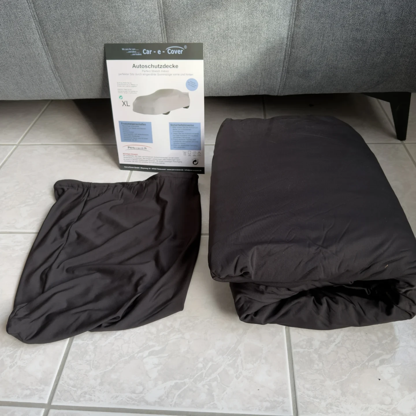 Beim Auspacken des Perfect Stretch® Car-Covers fällt sofort die hochwertige Produktpräsentation auf. Das Cover ist ordentlich gefaltet und in einer praktischen Aufbewahrungstasche verstaut, die es ermöglicht, es sicher und staubfrei zu lagern. Das Material fühlt sich angenehm weich und zugleich robust an. Bereits beim ersten Anheben wird deutlich, wie elastisch der Stoff ist, ohne dünn oder fragil zu wirken. Die Innenfläche ist besonders sanft und lässt erkennen, dass sie für empfindliche Lackoberflächen ausgelegt ist.