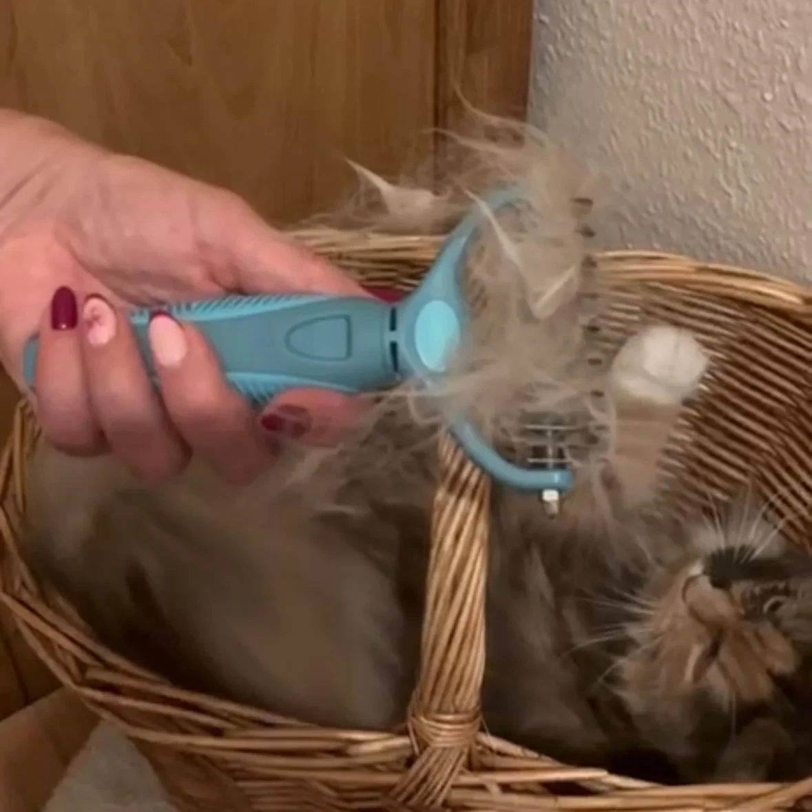 Ein Großteil der Unterwolle wurde entfernt, wobei nur minimale Reste zurückbleiben. Das Fell ist deutlich glatter nach der Anwendung