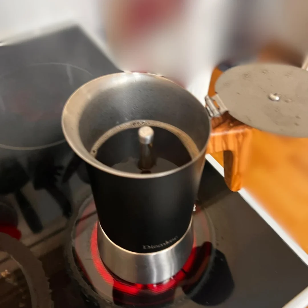 La estabilidad del mango de la cafetera espresso Diemker no muestra signos de debilidad o sobrecalentamiento; el mango permanece estable y frío durante el uso. El tiempo de ebullición también es bueno, ya que el espresso empieza a prepararse tras sólo 4 ó 5 minutos, relativamente rápido y sencillo. En cuanto a la facilidad de uso , la cafetera resulta un poco difícil de manejar cuando se extrae el filtro de la parte inferior, pero por lo demás es muy práctica y fácil de usar. La limpieza y el cuidado también son positivos, ya que casi todas las piezas, a excepción del filtro, son fáciles de desmontar, limpiar y volver a montar. Además, la cafetera espresso funciona bien en todo tipo de placas, lo que pone de relieve su versatilidad.