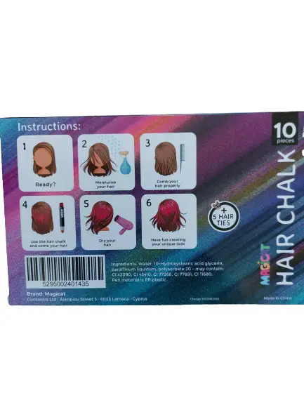 El tinte se adapta perfectamente a la mano de adultos y niños. El elegante envase ya sugería un producto de alta calidad. El producto en sí impresionó por su elaboración de primera clase y no tenía defectos ni bordes afilados. A diferencia de la laca, por ejemplo, no tiene efectos a largo plazo sobre el cabello y es seguro para niños de todas las edades y tipos de pelo. Además, el tinte es fácil de aplicar y quitar y no deja manchas en la ropa ni en los muebles. La calidad de la producción de latiza capilar Magicat es impresionantemente alta, y el fabricante también garantiza un uso seguro, ya que no es tóxica. Otro aspecto que habla en favor de la sostenibilidad del producto es su longevidad gracias al uso de materiales de alta calidad. Magicat concede gran importancia a los estándares de calidad