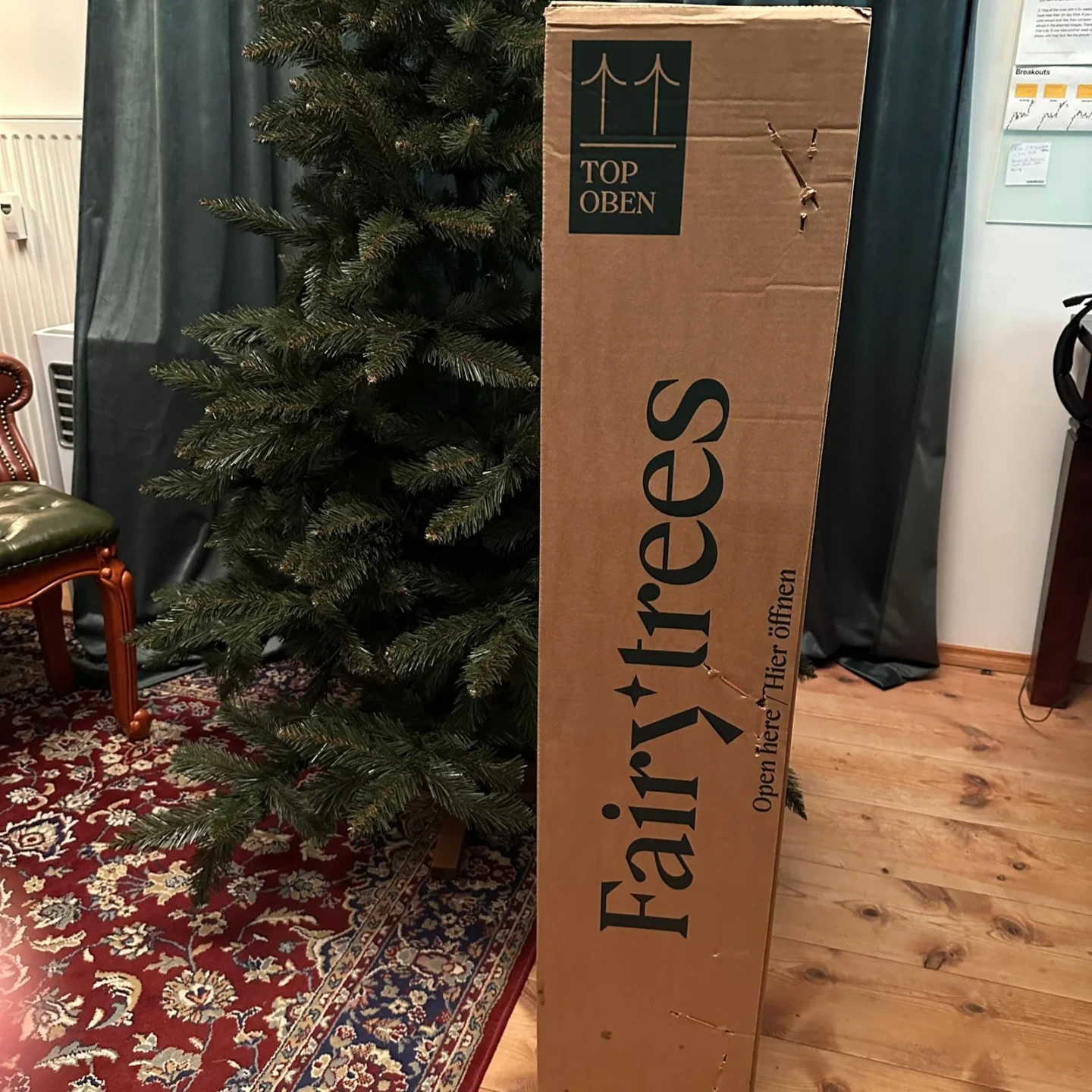 Bei dem Auspacken des FairyTrees FT01 fiel uns sofort die hochwertige und stabile Verpackung auf. Der Karton ist robust und schützt den künstlichen Weihnachtsbaum optimal während des Transports. Besonders positiv hervorzuheben ist, dass der Hersteller auf unnötigen Verpackungsmüll verzichtet hat – ein weiterer Pluspunkt in puncto Nachhaltigkeit. Der Lieferumfang ist vollständig und enthält alle notwendigen Komponenten, einschließlich des stabilen Baumständers. Die Gebrauchsanweisung ist klar, verständlich und leicht nachvollziehbar, was den Aufbau des künstlichen Tannenbaums angenehm einfach gestaltet. Insgesamt vermittelt der erste Eindruck ein durchdachtes und benutzerfreundliches Produkt, das sowohl ökologischen als auch praktischen Ansprüchen gerecht wird. FairyTrees beweist hier, dass Qualität, Umweltschutz und Funktionalität keine Gegensätze sein müssen.