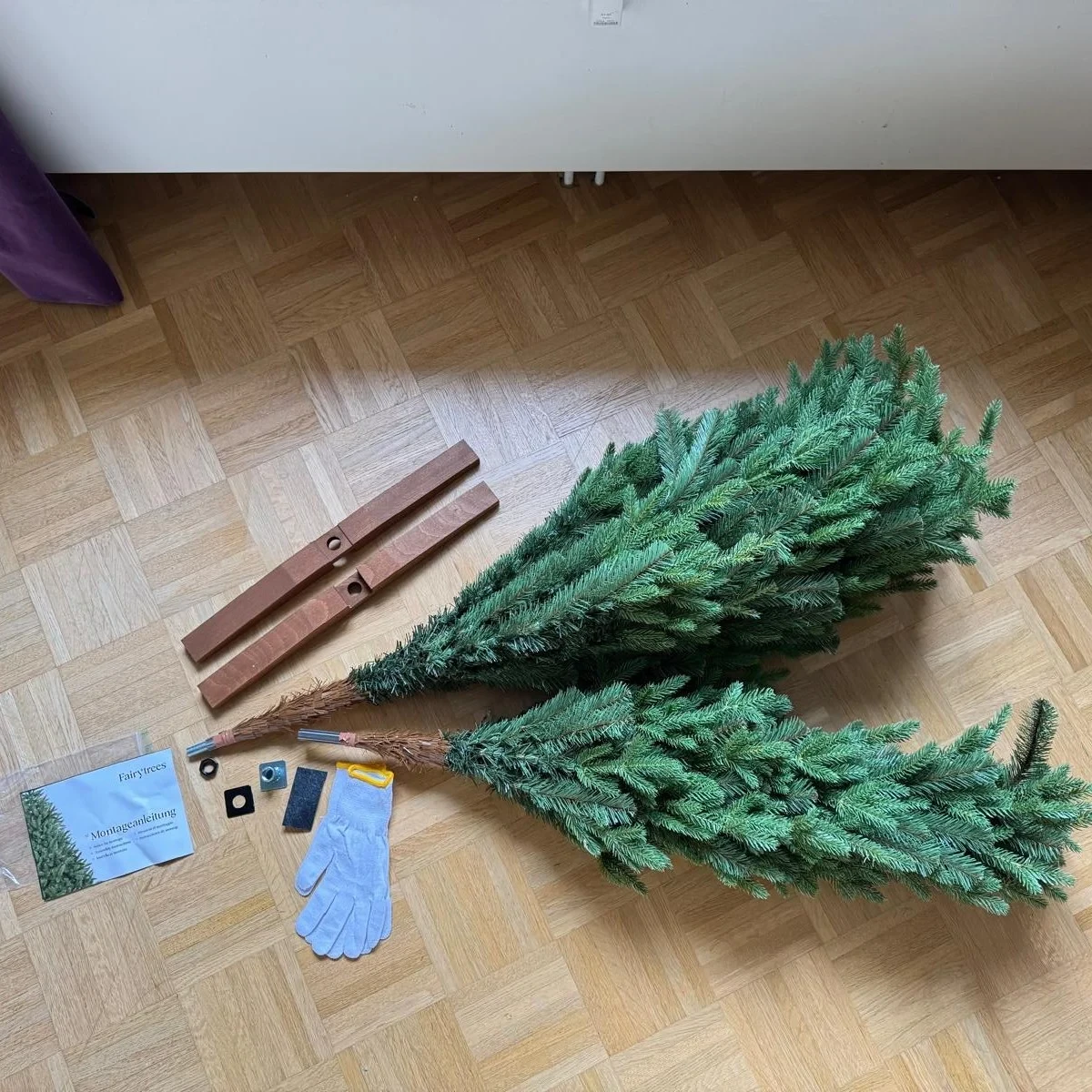 Beim Auspacken fällt sofort auf, wie kompakt und platzsparend der Baum verpackt wurde. In einem stabilen Karton geliefert, ist alles ordentlich sortiert. Die einzelnen Teile – Stamm, Zweige und Ständer – lassen sich leicht entnehmen und wirken gut verarbeitet. Eine bebilderte Aufbauanleitung liegt bei und erklärt die Schritte verständlich. Positiv überrascht die Tatsache, dass keine unangenehmen Gerüche oder übermäßiger Plastikmüll auftreten. Auch die Zweige sind bereits vorgeformt und müssen nur noch aufgefächert werden, was den Aufbau erleichtert. Insgesamt vermittelt die Verpackung einen durchdachten und nachhaltigen Eindruck, der dem Anspruch gerecht wird.