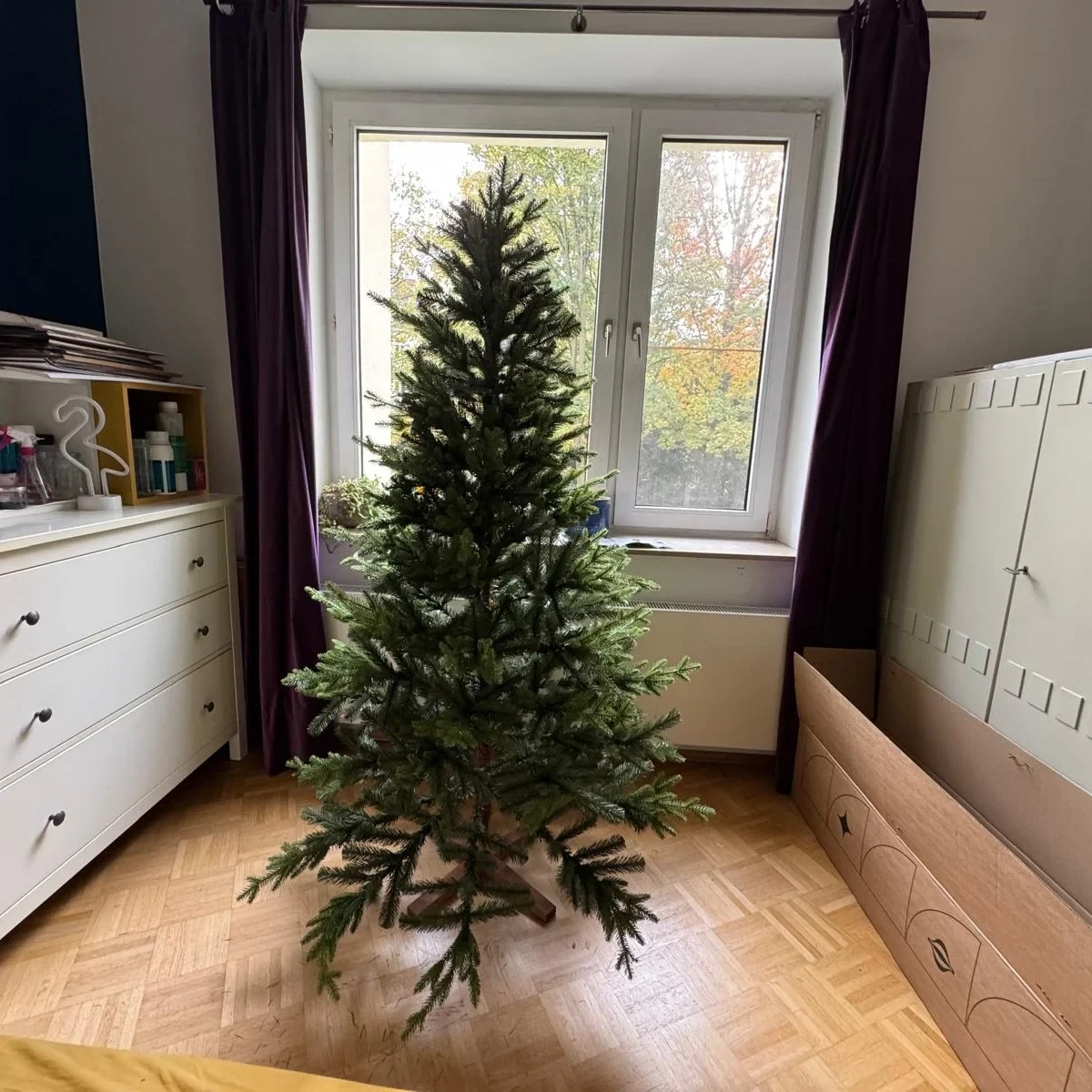 Der künstliche Weihnachtsbaum von FAIRYTREES in der Variante „Bayerische Tanne“ mit 180 cm Höhe wirkt auf den ersten Blick hochwertig und naturgetreu. Besonders auffällig ist die dichte, gleichmäßige Verteilung der Zweige, die dem Baum ein volles und harmonisches Gesamtbild verleihen. Die Kombination aus dunkelgrünen Nadeln und leicht helleren Spitzen erzeugt eine angenehme Tiefenwirkung, die an echte Tannen erinnert. Auch ohne Dekoration macht der Baum bereits eine festliche Figur und bringt sofort Weihnachtsstimmung ins Wohnzimmer. Durch seine Größe eignet er sich gut für mittelgroße Räume, ohne dabei überladen zu wirken. Der mitgelieferte Holzständer sorgt für einen stabilen Stand und fügt sich optisch gut ins Gesamtbild ein.