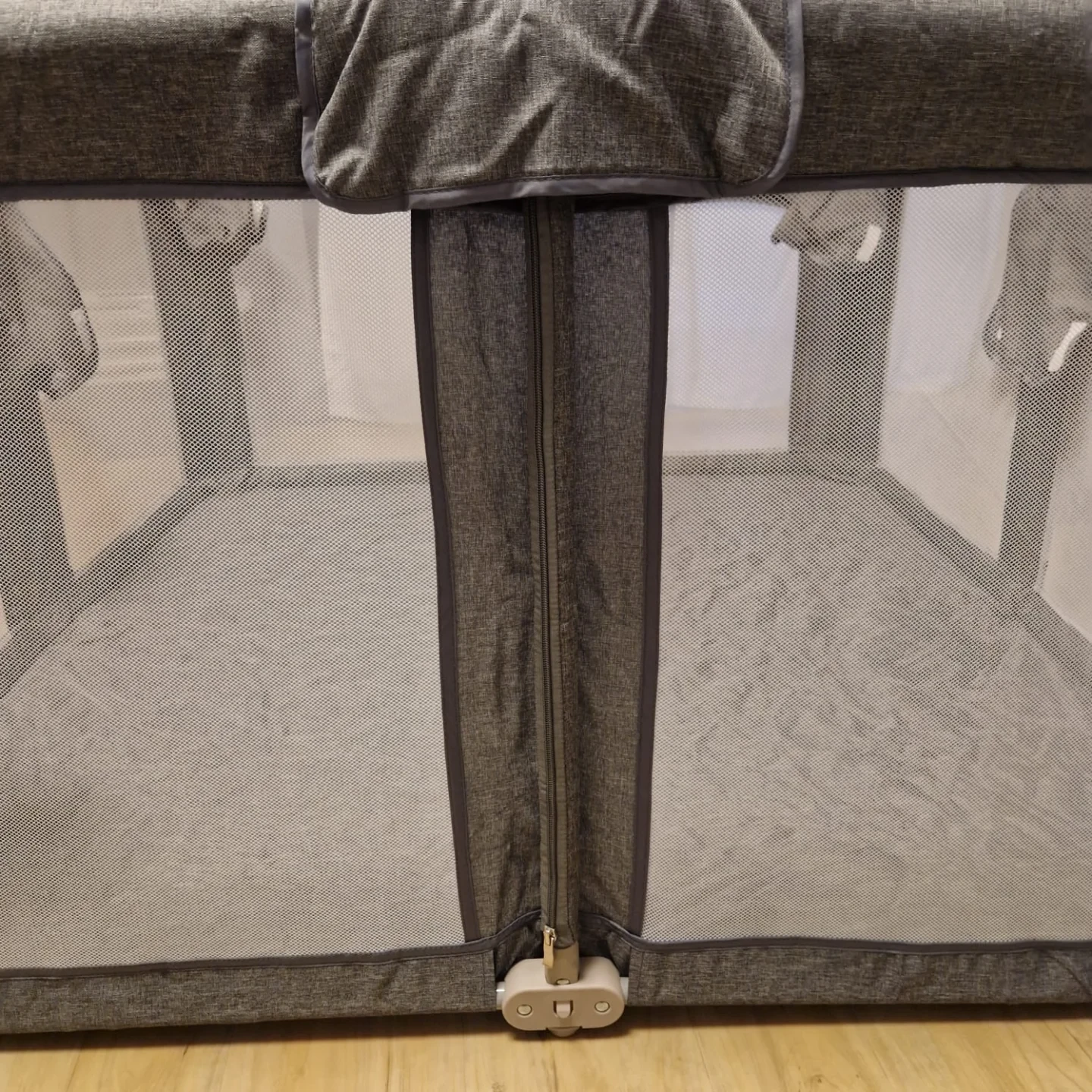 Der faltbare Laufstall vermittelt bereits bei dem Auspacken einen sehr hochwertigen Gesamteindruck. Das zeitlose sowie schlichte Design in dezenten Grautönen wirkt modern und fügt sich harmonisch in verschiedenste Umgebungen ein. Die Verarbeitung überzeugt auf ganzer Linie: Die Stoffseiten sind sauber vernäht, ohne lose Fäden oder unsaubere Kanten, und der Rahmen erscheint stabil und stabil aufgebaut. Selbst leer behält der Laufstall seine Form und wirkt stabil, was Vertrauen in seine Tragfähigkeit und Langlebigkeit weckt. Insgesamt hinterlässt der faltbare Laufstall somit einen sehr positiven ersten Eindruck, der sowohl optisch als auch haptisch überzeugt.