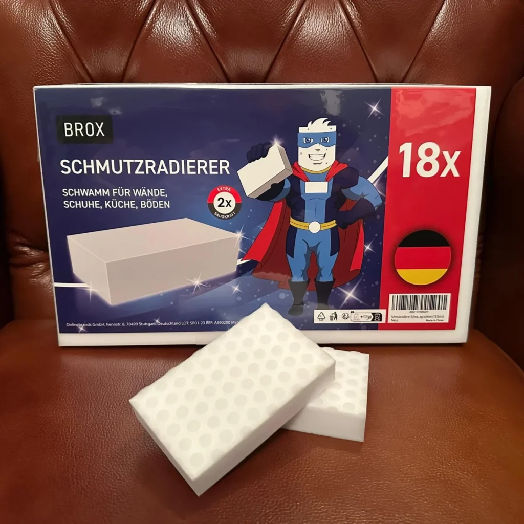 Au premier contact, l’effaceur de saleté BROX® séduit par son aspect propre et simple, qui met l’accent sur la fonctionnalité. La finition est de très haute qualité, ce qui se reflète dans la structure robuste de l’éponge miracle. Même après avoir été humidifiée, l’éponge reste stable et conserve sa forme, ce qui témoigne d’une longue durée d’utilisation. Prüfengel GmbH fait l’éloge de la structure dense de la mousse, qui rend l’éponge plus solide et plus résistante que les éponges de nettoyage traditionnelles. Il n’y a pas d’informations concrètes sur la durabilité du matériau, mais les propriétés de haute qualité et respectueuses de l’environnement indiquent que la production a été bien pensée. Dans l’ensemble, la gomme à salir laisse une impression de professionnalisme qui inspire confiance dans ses performances.