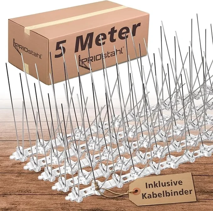 Les pics sont idéaux pour une utilisation sur les balcons, les gouttières, les abris de voiture, les poutres de toit ou les bâtiments industriels. Ils constituent une barrière d’atterrissage efficace et empêchent les pigeons, les corbeaux, les corneilles, les mouettes, les moineaux et même les chats de s’installer. Grâce à des matériaux résistants aux UV et aux intempéries, le dispositif de protection reste durable et fiable même en cas de pluie, de neige et de fort ensoleillement. Une solution durable contre les salissures et les tentatives de nidification, également adaptée aux zones autour des installations solaires et photovoltaïques.