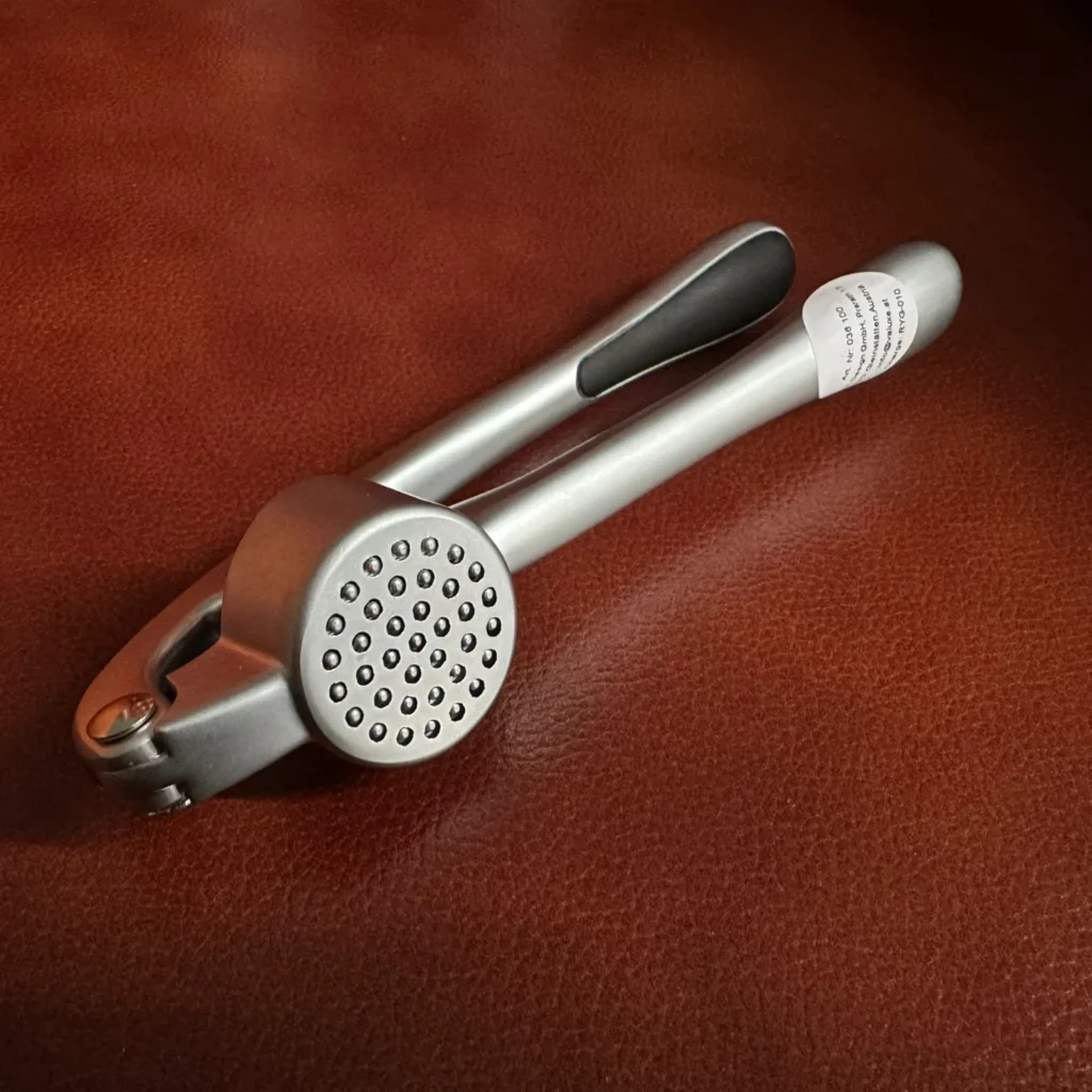 Il rivestimento in plastica ABS dei manici garantisce una maggiore sicurezza. Nel complesso, lo spremi aglio VALUXE è un prodotto ben studiato e di alta qualità che convince sia dal punto di vista visivo che funzionale.