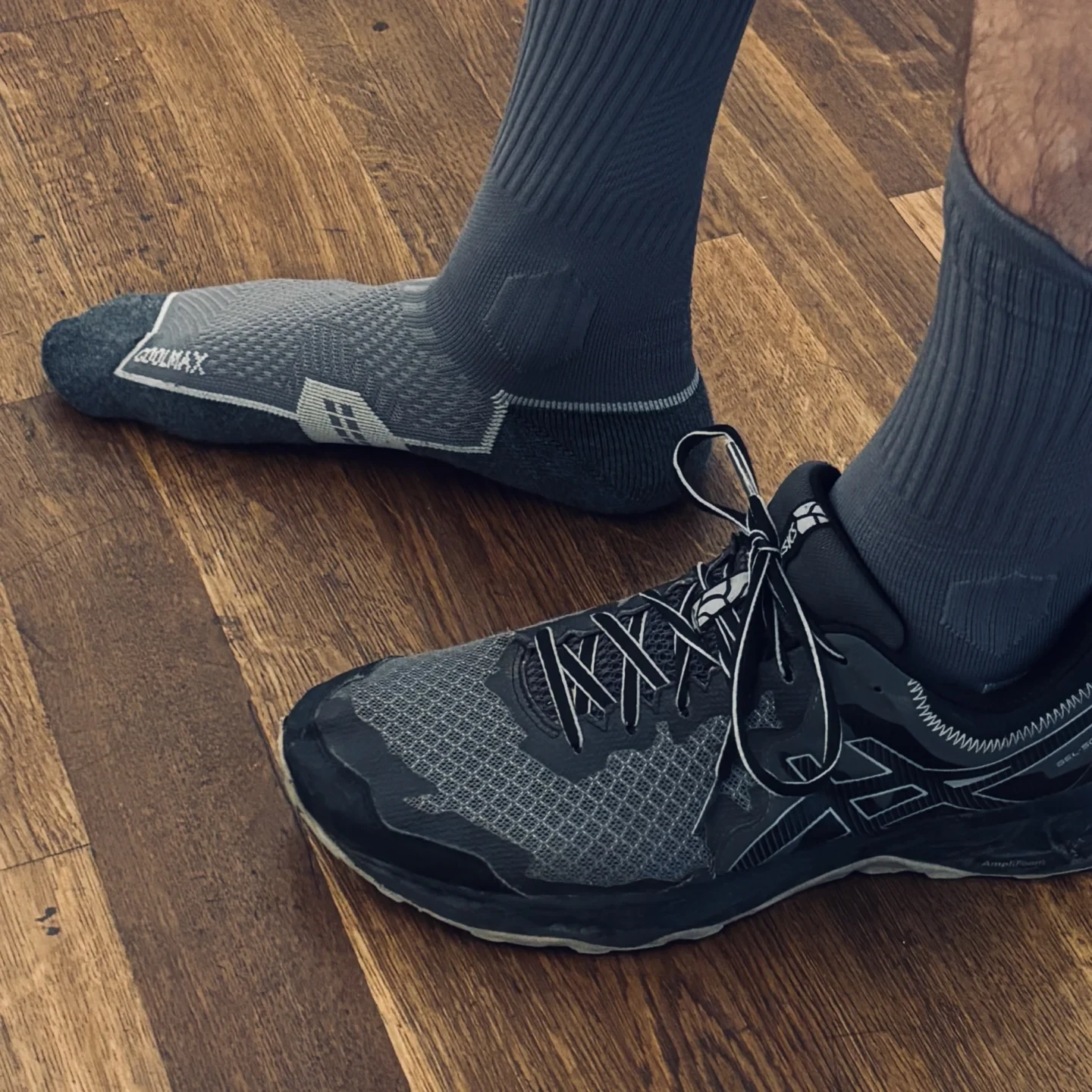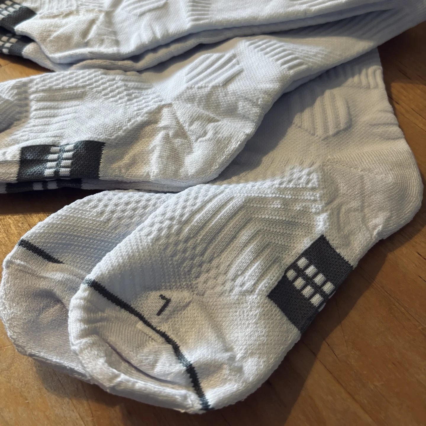 Der erste Eindruck der Sportsocken ist durchweg positiv. Die Socken sehen hochwertig und sportlich aus, haben eine gleichmäßige Farbgebung und präzise Musterungen. Die Verarbeitung hinterlässt einen sauberen Eindruck: Es konnten keine Löcher, abstehende Fäden oder unsaubere Nähte festgestellt werden. Die verstärkten Polsterungen an Ferse, Vorfuß und Achillessehne sind ordentlich eingearbeitet und der nahtlose Zehenbereich sorgt für zusätzlichen Tragekomfort. Besonders auffällig ist die Stabilität der Socken. Der Stoff wirkt robust und formbeständig, während die elastischen Bündchen sicheren Halt bieten – auch bei schnellen Bewegungen oder Richtungswechseln. Positiv hervorzuheben ist zudem der nachhaltige Materialansatz: Der verwendete Bambus-Coolmax-Mix sorgt nicht nur für Atmungsaktivität und Feuchtigkeitsregulierung, sondern trägt auch zu einer umweltfreundlicheren Produktlösung bei. Die Socken sind nach dem OEKO-TEX Standard 100 zertifiziert und tragen das Climate Friendly-Siegel, was eine schadstoffgeprüfte Herstellung sowie eine ressourcenschonende Produktion bestätigt.