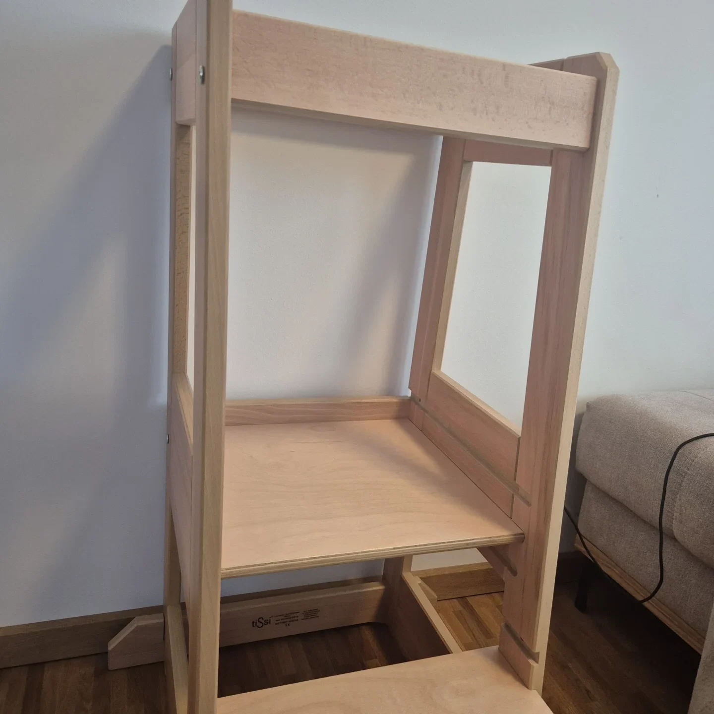 Besonders hervorzuheben ist die Stabilität. Der Lernturm steht sicher und fest, ohne zu wackeln, selbst wenn sich das Kind bewegt. Dies vermittelt ein hohes Maß an Vertrauen im täglichen Gebrauch. Die Verwendung von massivem Holz unterstreicht zudem den nachhaltigen Charakter des Produkts und sorgt für eine lange Lebensdauer.