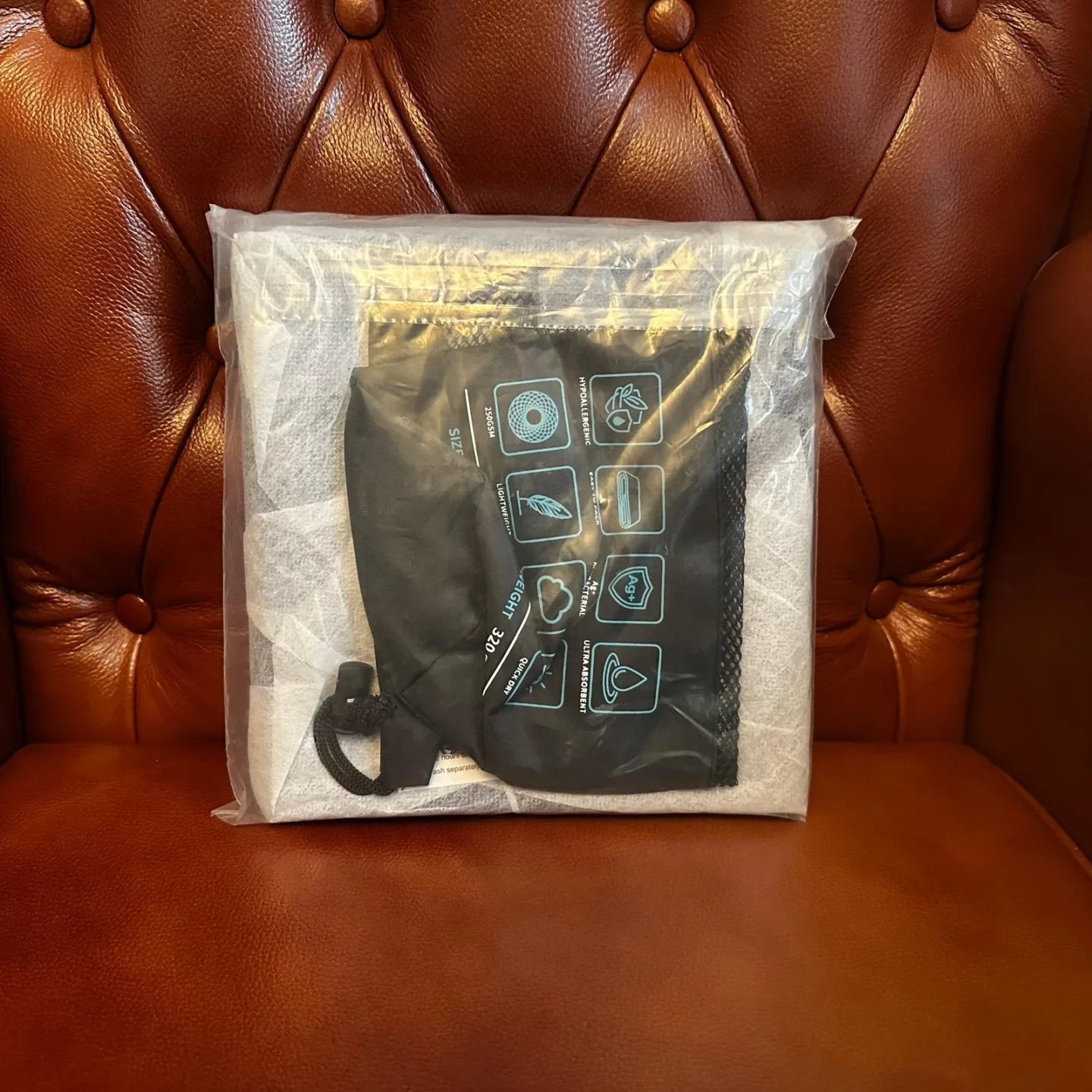 In puncto Nachhaltigkeit der Verpackung hat der Hersteller auf unnötigen Verpackungsmüll verzichtet. Die verwendete Plastikfolie beschränkt sich auf das notwendige Minimum zum Schutz des Textils – ein vernünftiger Kompromiss zwischen Funktionalität und Ressourcenschonung. Der Packungsinhalt war vollständig und enthielt neben dem Handtuch den praktischen atmungsaktiven Netzbeutel zum platzsparenden Transport.