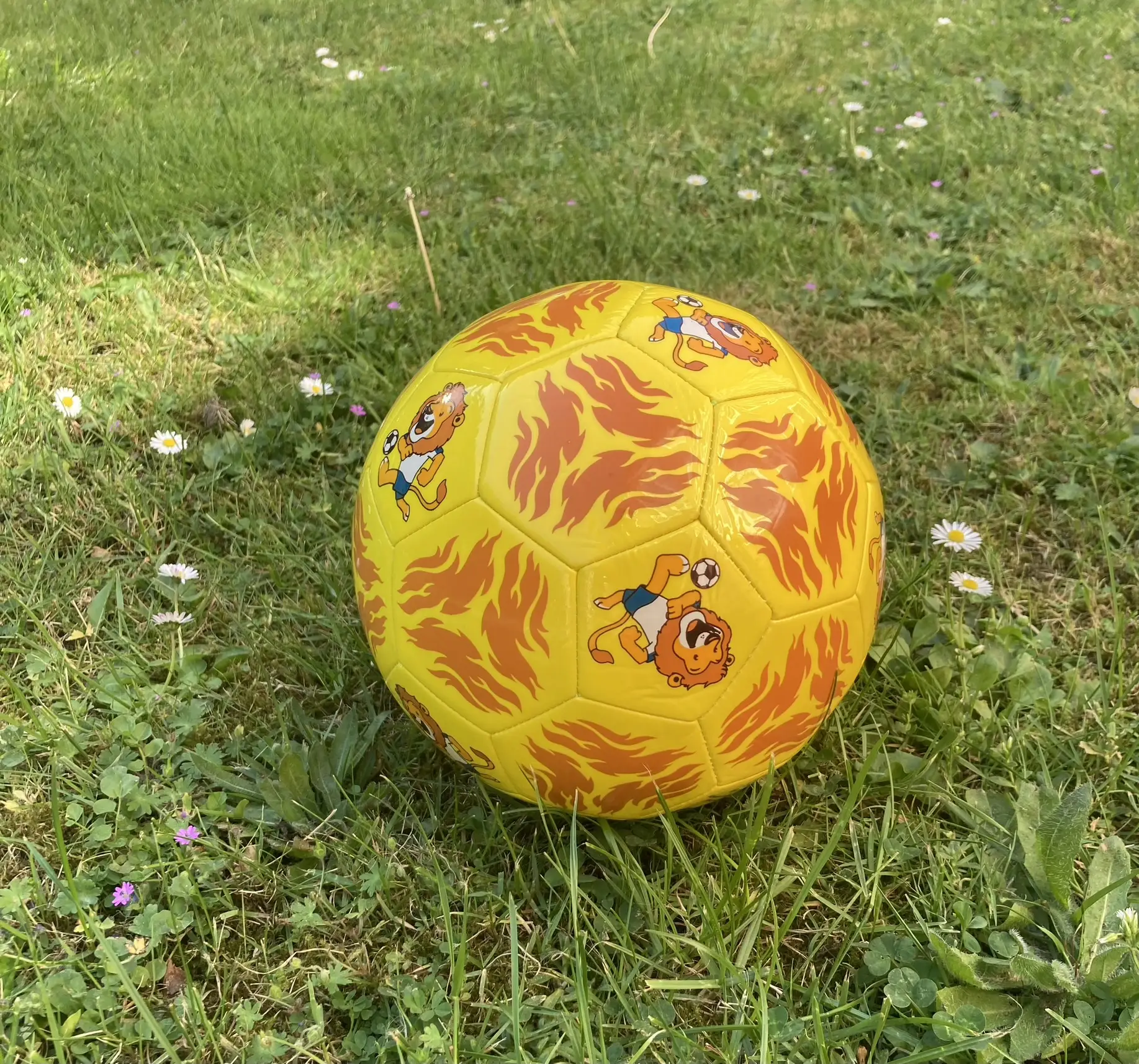 Na het uitpakken bekijken we het product van dichtbij. Het eerste wat opvalt is het zeer liefdevolle en kindvriendelijke ontwerp van de bal. Het leeuwtje in voetbalkleding lijkt bijzonder geschikt en motiverend voor kinderen tussen de 3 en 7 jaar.