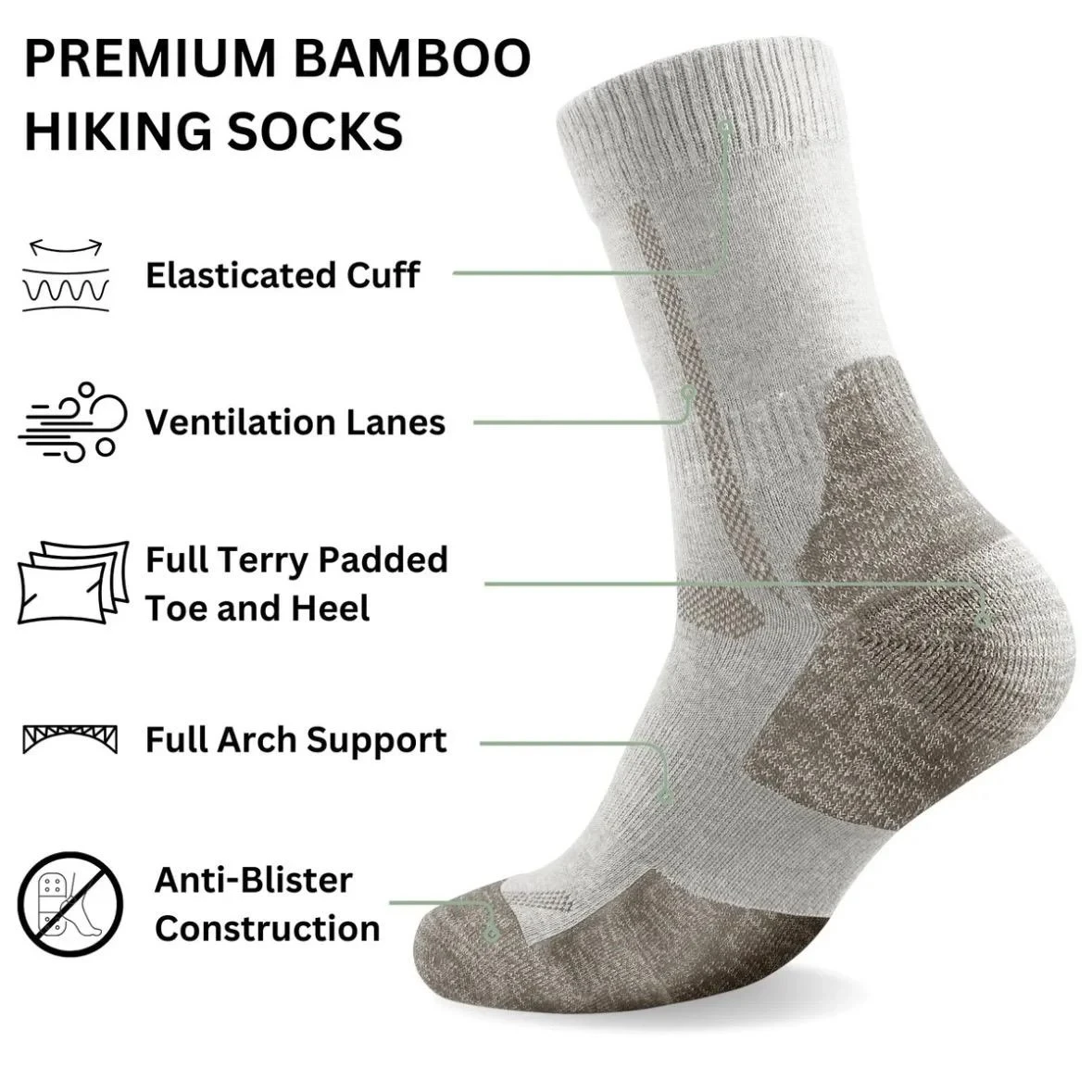 Bei dem ersten Kontakt mit den Bamboo Hiking Socks überzeugt das Produkt durch ein ansprechendes und modernes Design. Die Verfügbarkeit in fünf unterschiedlichen Farben bietet eine angenehme Auswahl und ermöglicht eine individuelle Anpassung an persönliche Vorlieben.