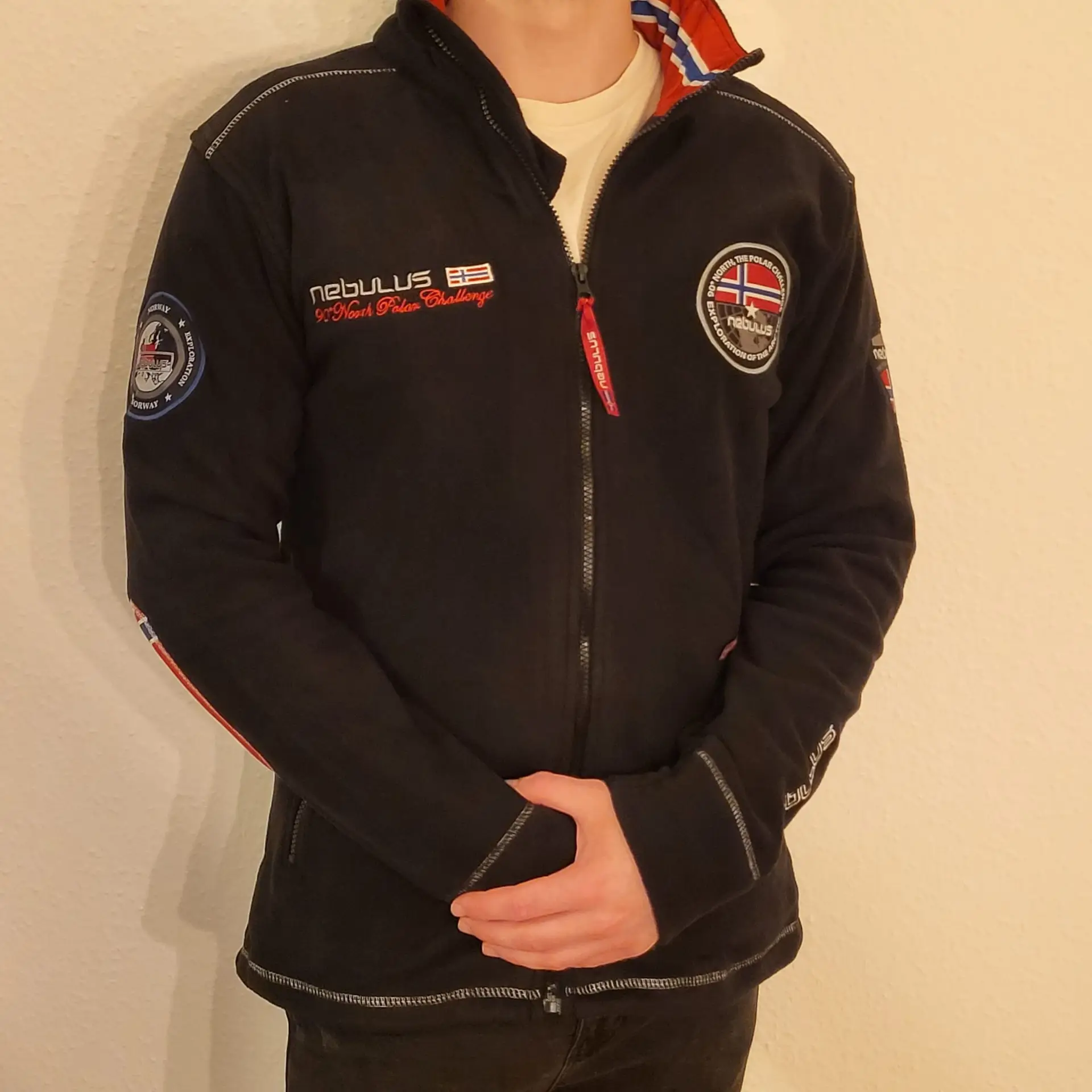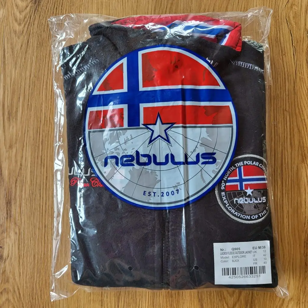 Niezależnie od wersji męskiej lub damskiej, kurtka polarowa jest wykonana z miękkiego i wygodnego materiału polarowego, który zapewnia optymalny komfort. Tkanina jest gładka i przyjemna w dotyku. Przód można otworzyć na całej długości za pomocą zamka błyskawicznego. Zamek błyskawiczny jest również czarny, z czerwoną przywieszką przymocowaną do otwieracza. Oprócz napisu Nebulus, na zamku wszyta jest również mała flaga Norwegii.