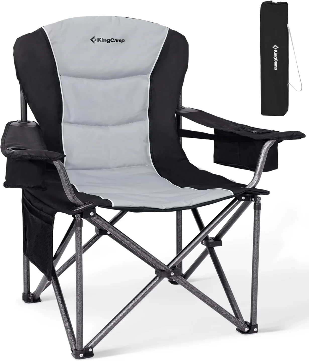 Krzesło kempingowe KingCamp to solidne i wszechstronne krzesło składane do użytku na świeżym powietrzu, idealne na kemping, wędkowanie, wakacje na plaży, do ogrodu lub na balkon. Dzięki stabilnym stalowym rurom i wzmocnionej konstrukcji oferuje wysoką nośność do 205 kilogramów, a także wysokie oparcie z regulowanym podparciem lędźwiowym dla ergonomicznego komfortu. Wyściełana tkanina Oxford 600D zapewnia przestronne siedzisko, a wielofunkcyjne elementy, takie jak torba chłodząca, kieszenie boczne i siatkowy uchwyt na napoje, ułatwiają codzienne życie. Krzesło można złożyć bez użycia narzędzi, a dzięki wadze zaledwie 5,4 kg jest łatwe w transporcie.