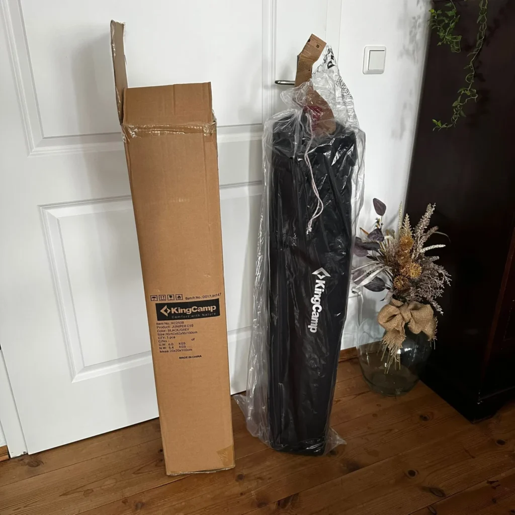 W firmie Prüfengel GmbH dokładnie zbadaliśmy krzesło kempingowe KingCamp pod kątem pierwszego wrażenia, zaczynając od opakowania. Stabilny karton zapewnia niezawodną ochronę produktu, chroniąc krzesło przed uszkodzeniami podczas transportu, bez konieczności stosowania nadmiernej wyściółki. Ochronna folia plastikowa otacza produkt, zapobiegając zarysowaniom lub zabrudzeniom, a tym samym przyczyniając się do bezpiecznej dostawy. W trosce o zrównoważony rozwój zrezygnowano z niepotrzebnych materiałów opakowaniowych – nie ma zbędnych materiałów wypełniających ani dodatkowych opakowań plastikowych, co minimalizuje ślad ekologiczny i kładzie nacisk na funkcjonalność. Zawartość opakowania jest kompletna: oprócz samego krzesła kempingowego nie są potrzebne żadne dodatkowe akcesoria, ponieważ produkt jest gotowy do natychmiastowego użycia. Brakuje oddzielnej instrukcji obsługi, ale nie stanowi to problemu, ponieważ krzesło jest intuicyjne w montażu – wystarczy je po prostu rozłożyć, aby z niego skorzystać. Ogólnie rzecz biorąc, opakowanie sprawia wrażenie profesjonalnego i wydajnego, co ułatwia rozpoczęcie użytkowania i zapewnia pozytywne wrażenia podczas rozpakowywania. Aspekty te podkreślają filozofię marki KingCamp, która stawia na praktyczność i świadomość ekologiczną.