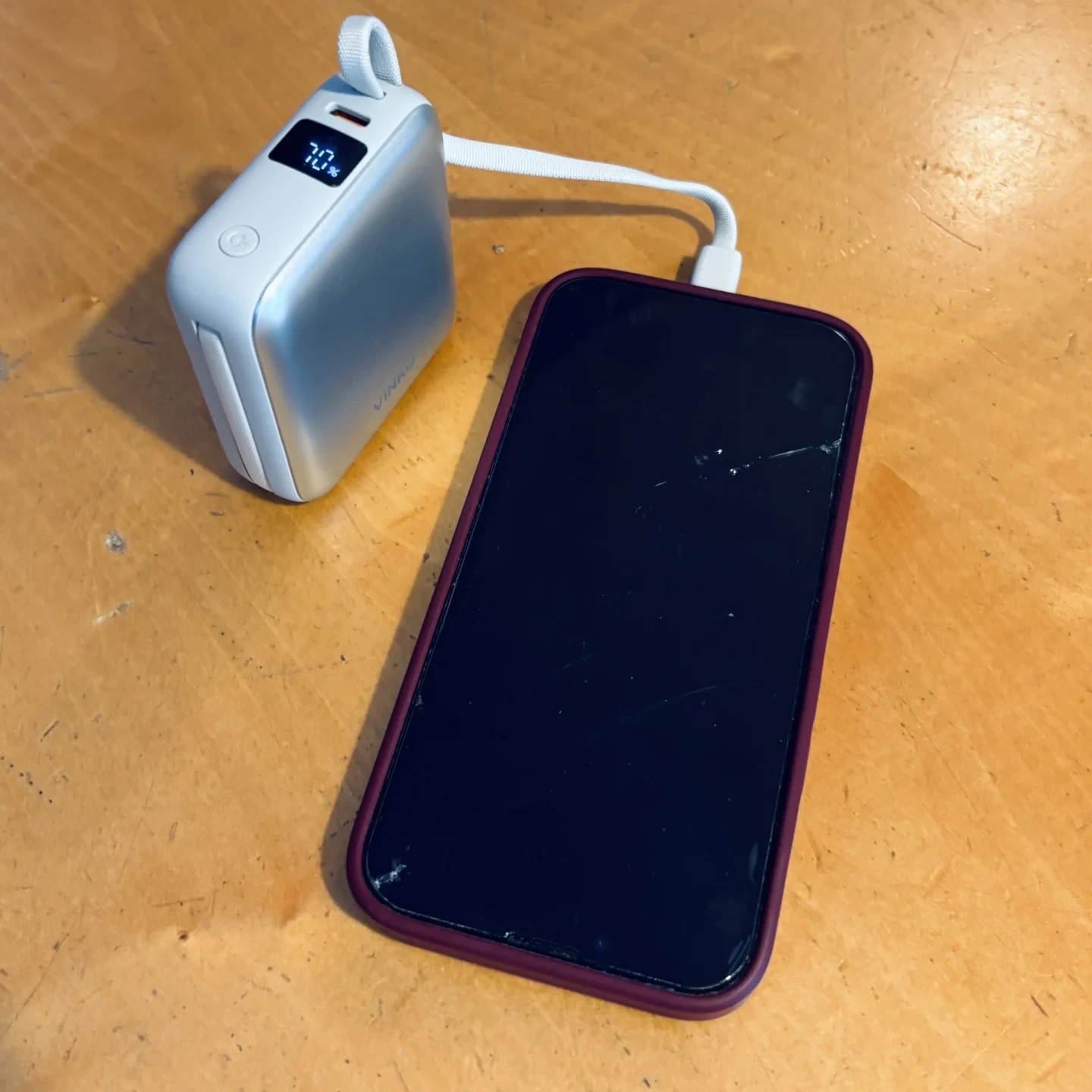 Die Powerbank erwies sich im Praxistest als leistungsstarkes und ausgereiftes Gerät, das alle zentralen Funktionen zuverlässig und effizient ausführte. Die Ladeleistung überzeugte bei Geräten mit Android- sowie mit Apple-Betriebssystem. Über das integrierte USB-C-Kabel wurden Smartphones mit Schnellladefunktion zügig aufgeladen, während das Lightning-Kabel eine stabile Energieübertragung gewährleistete. Die Schnellladefunktion arbeitete zuverlässig und machte moderne Geräte schnell wieder einsatzbereit. Auch das Wiederaufladen der Powerbank selbst verlief problemlos und innerhalb der angegebenen Zeit. Positiv fiel zudem die breite Kompatibilität auf: Sowohl Smartphones als auch Tablets ließen sich ohne Schwierigkeiten anschließen. Der zusätzliche USB-C-Port erweitert die Einsatzmöglichkeiten und erlaubt den Anschluss externer Kabel, was praktisch ist, wenn eine längere Verbindung benötigt wird. Die integrierten Kabel sind fest mit der Powerbank verbunden und lassen sich ordentlich verstauen. Nichts hängt lose heraus und die Aufwicklung ist sauber gelöst. Lediglich die Kabellänge könnte etwas großzügiger sein, für den Alltag reicht sie jedoch aus. Bei Bedarf lässt sich zudem problemlos ein längeres Kabel anschließen. Dank ihres geringen Gewichts und ihrer kompakten Bauweise ist die Powerbank besonders tragbar. Sie liegt angenehm in der Hand, passt in Jacken- oder Hosentaschen und kann über die Trageschlaufe bequem transportiert oder am Rucksack befestigt werden – ideal für Reisen oder den täglichen Gebrauch. Das LED-Display zeigte im Test zuverlässig den Ladezustand und den Schnellladestatus an, reagierte präzise und war gut ablesbar.