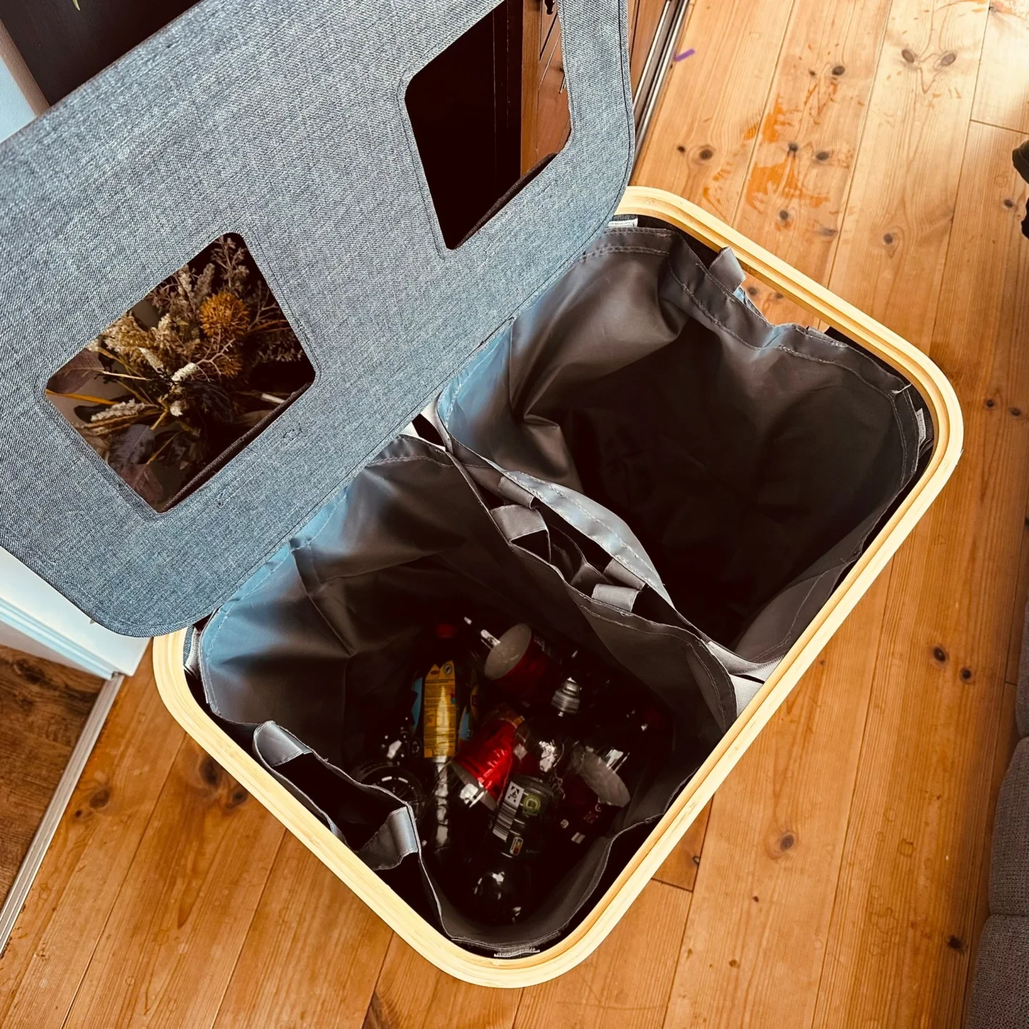 Vorteile wie die einfache Reinigung mit einem feuchten Tuch und die bequeme Transportierbarkeit gestalten es zu einem echten Küchen-Recycling-Behälter.