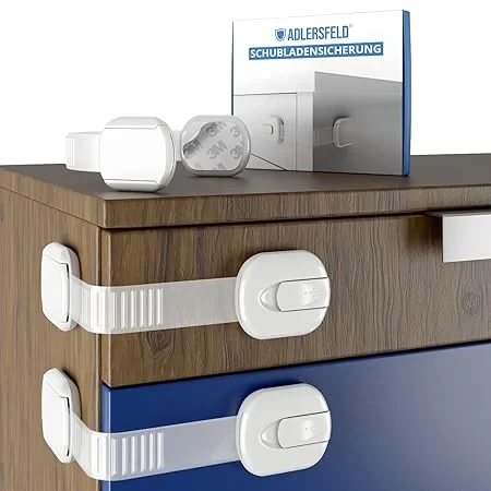 Die ADLERSFELD® Schubladensicherung ist eine multifunktionale Lösung, die speziell entwickelt wurde, um Kinder vor den größten Gefahren im Haushalt zu schützen. Sie verhindert den Zugriff auf Chemikalien, scharfe Gegenstände, verschluckbare Kleinteile und schützt vor eingeklemmten Fingern. Ein herausragendes Merkmal dieser Sicherung sind die ORIGINAL 3M-KLEBSTREIFEN, die dafür sorgen, dass das Schrankschloss bombenfest auf jeder Oberfläche haftet – sei es auf Möbeln, Türen oder sogar Kühlschränken. Die Montage ist denkbar einfach und erfordert weder Bohren noch Schrauben. Die Möglichkeit, die Länge des Schrankschlosses individuell anzupassen, ist ein weiterer Vorteil. Neben der einfachen Handhabung bietet das Produkt hervorragende Sicherheitseigenschaften.