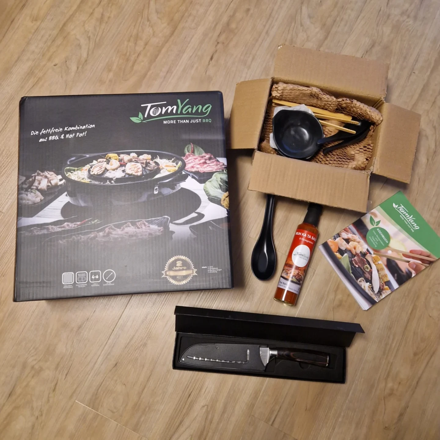 Der TomYang Thai Grill & Hot Pot kombiniert zwei Zubereitungsarten, die in asiatischen Küchen fest verankert sind: Grillen und Kochen in einer aromatischen Brühe. Das Gerät soll laut Hersteller ein gemeinschaftliches Kocherlebnis ermöglichen, bei dem Grillgut und Suppenzutaten gleichzeitig gegart werden. Schon bei dem Auspacken wirkt der Grill hochwertig verarbeitet und funktional durchdacht – von der abnehmbaren Grillpfanne über die Antihaftbeschichtung bis hin zum kompakten, modernen Design. Die Kombination aus 1800 Watt Leistung, integrierter Hot Pot Rinne und einfach zu bedienendem Thermostat verspricht ein vielseitiges Gerät, das sowohl im Alltag als auch beim geselligen Essen mit Freunden überzeugen soll.