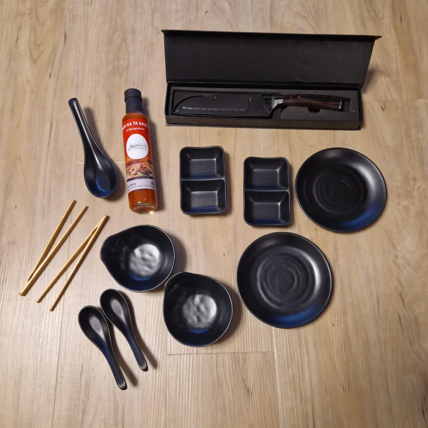 Der Thai Grill & Hot Pot wird mit großer Sorgfalt verpackt, um sicherzustellen, dass dieses während des Transports optimal geschützt ist. Der stabile Karton bietet eine zuverlässige Schutzschicht, die sicherstellt, dass das Produkt unbeschädigt bei ihrem Bestimmungsort ankommen. Trotz des Verzichts auf unnötigen Verpackungsmüll könnte die Verwendung von Plastikfolie für einige Verbraucher und Verbraucherinnen als kritisch angesehen werden. Die Produktverpackung enthält einen Thai Grill und Hot Pot, vier Holzzangen, ein Kochbuch, ein umfangreiches Accessoire-Set (zwei Teller, Schaken, Saucenschalen, Löffel und Holzzangen), einen großen BBQ-Suppenlöffel, einen Santokumesser und eine Thai BBQ Sauce. Außerdem liegt eine mehrsprachige Gebrauchsanleitung bei.
