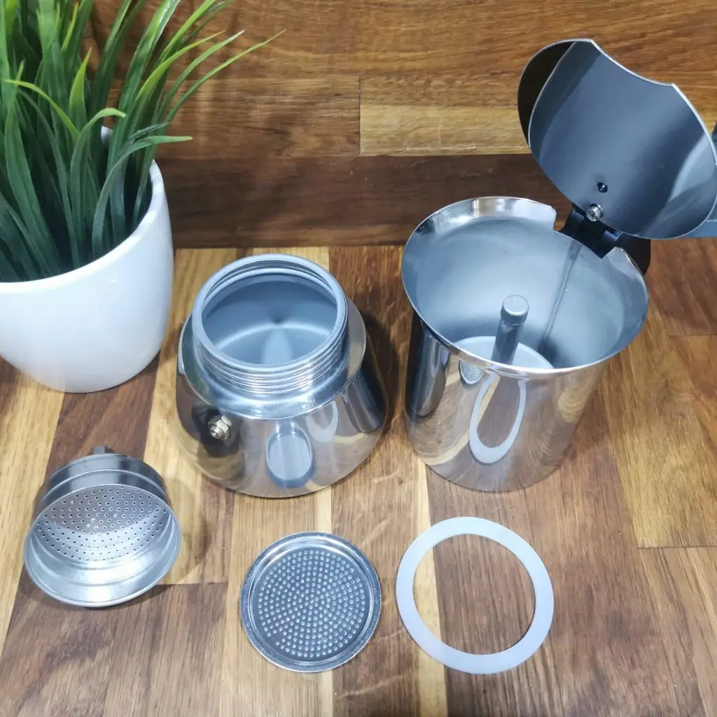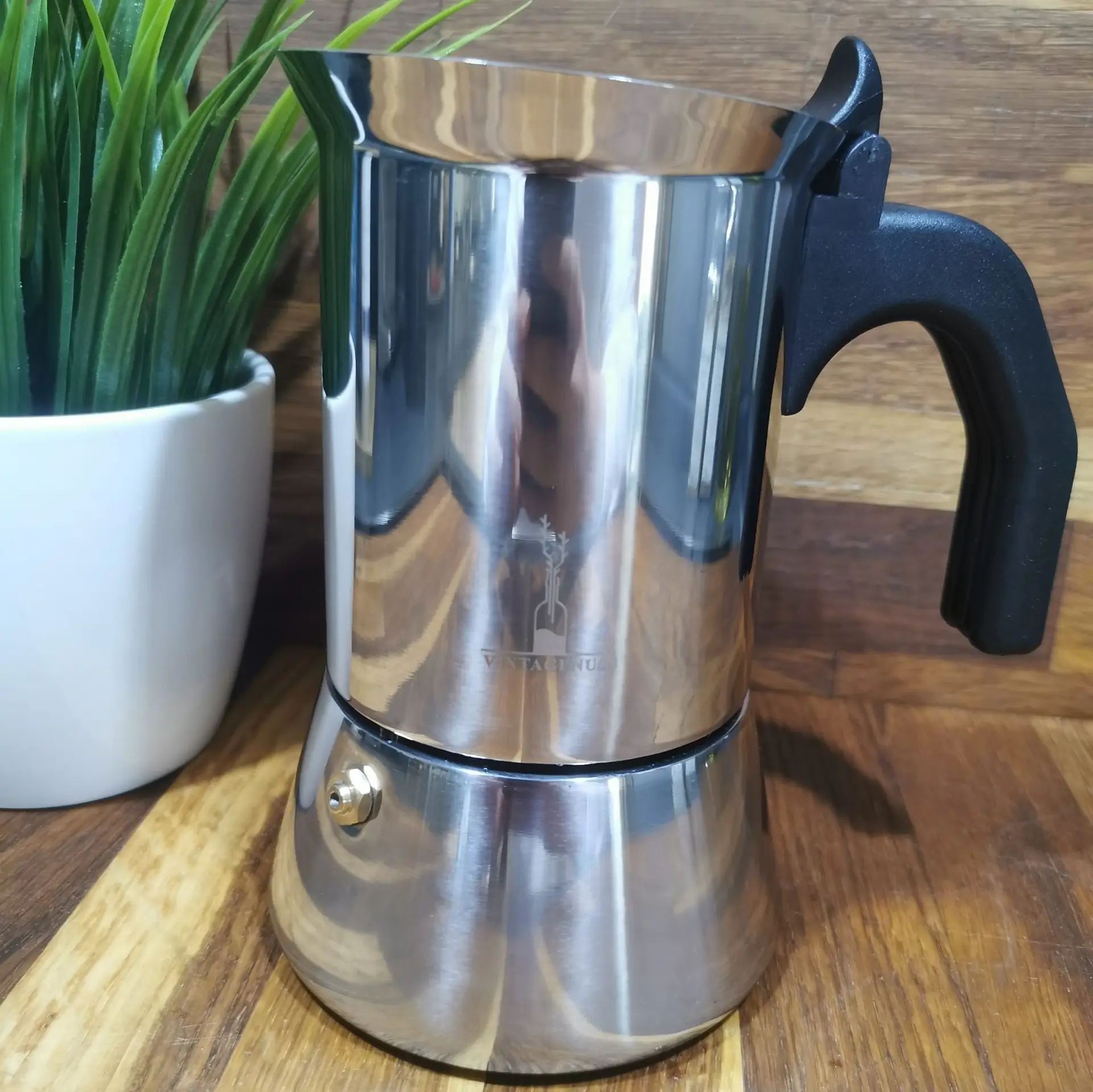 Uns fallen keinerlei Verarbeitungsfehler auf, der Espressokocher wirkt robust und insgesamt sind keine scharfen Kanten oder harte Übergänge zu spüren. Zudem besticht das Produkt mit seinem ansprechenden sowie zeitlosen Design. Durch diese hochwertige Verarbeitung ist es ein optisches Highlight in der jeder Küche oder Kaffeeecke. Durch die verwendeten hochwertigen Materialien gehen wir jedoch von einer hohen Langlebigkeit aus.