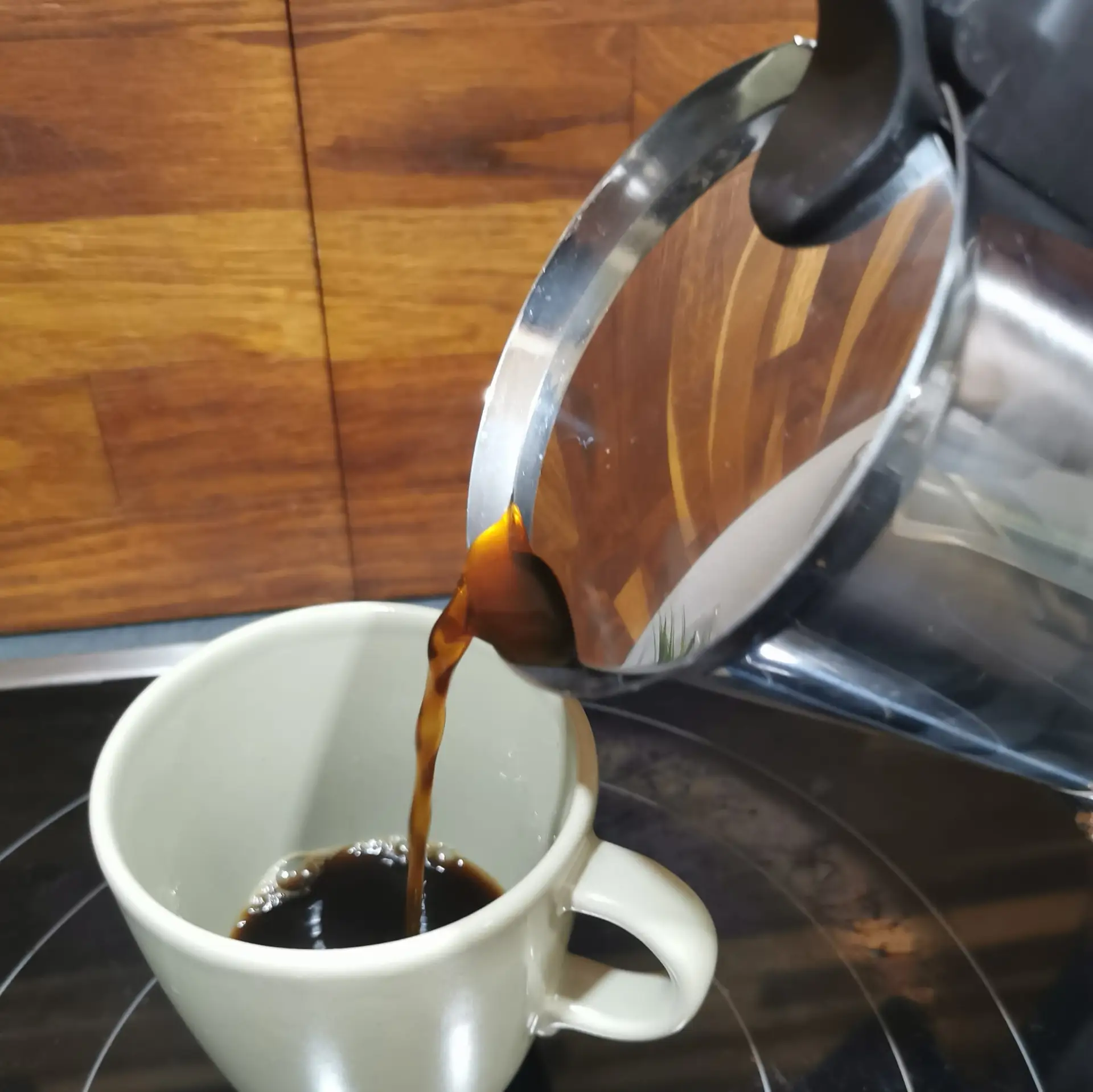 Das Testen des Espressokochers von VINTAGENUSS hat uns beim Test viel Freude und vor allem eine genussvolle Kaffeepause beschert. Die einfache und schnelle Zubereitung ist ein weiterer Vorteil. In wenigen Schritten erhält man eine Kaffeespezialität. Zuerst wird der untere Teil mit Wasser gefüllt. Um die Zubereitungszeit zu verkürzen, haben wir bereits warmes Wasser eingefüllt. Anschließend wird das Kaffeepulver in den Metallfilter gefüllt, solange bis dieser gut befüllt ist. Nach Verschrauben der Ober- und Unterseite kann der Kocher auf die Herdplatte gestellt werden. Um den Kaffee nicht zu verbrennen, haben wir den Herd nur auf eine mittlere Stufe eingestellt. Sobald das Wasser kocht, fängt der fertige Espresso an, sich im oberen Teil des Espressokochers zu sammeln. Innerhalb weniger Minuten ist der Espresso fertig.